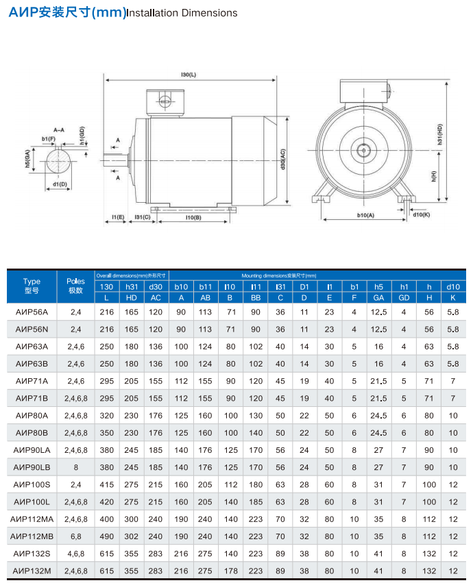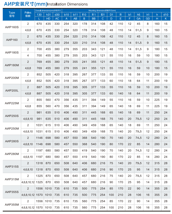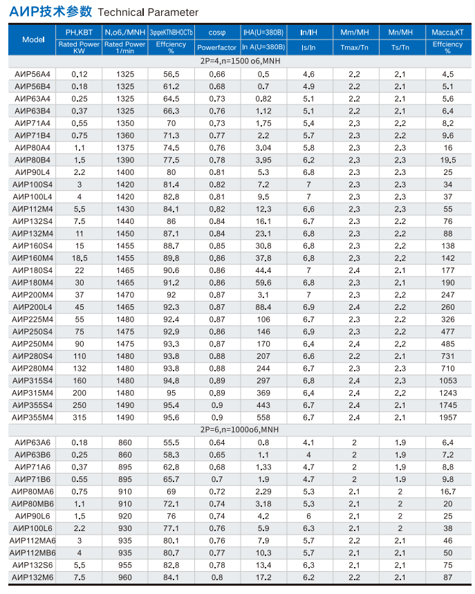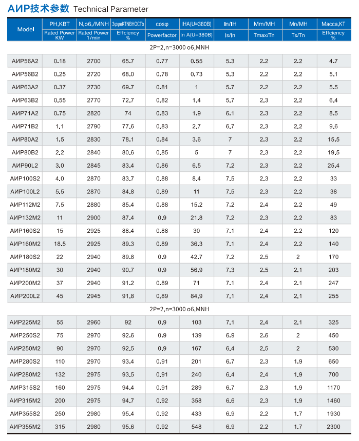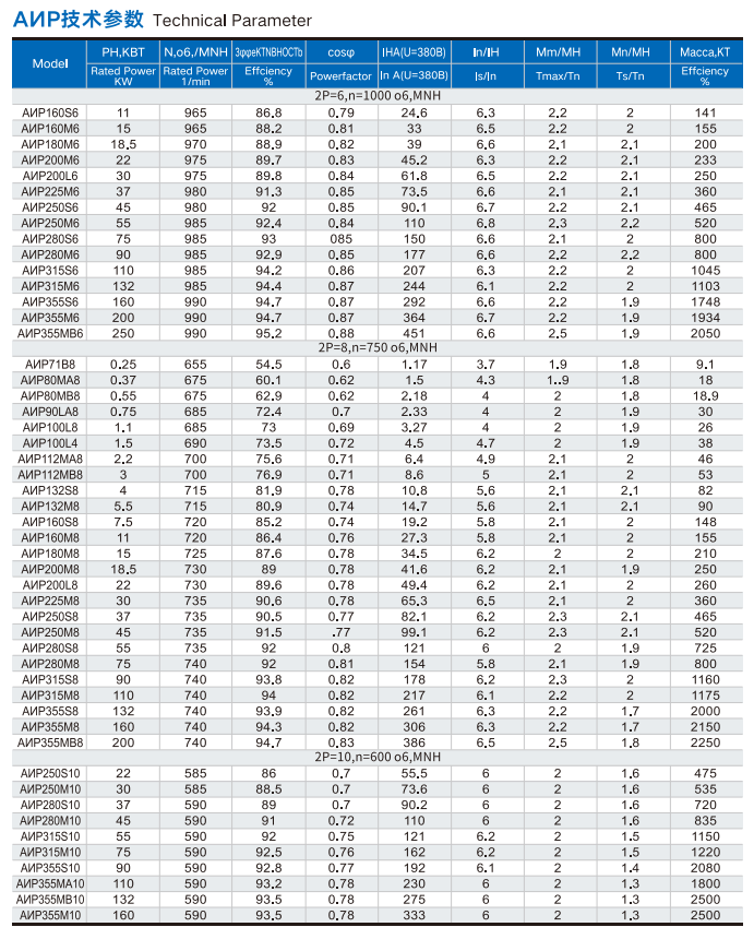 - Voltage & Frequency: 220/380V (56–112), 380/660V (132–355) at 50Hz