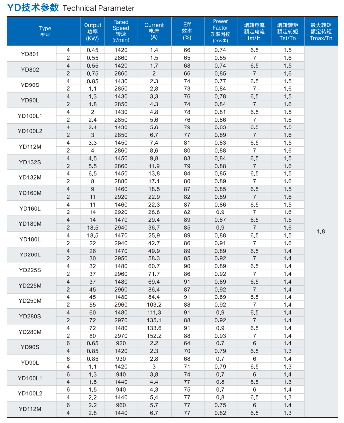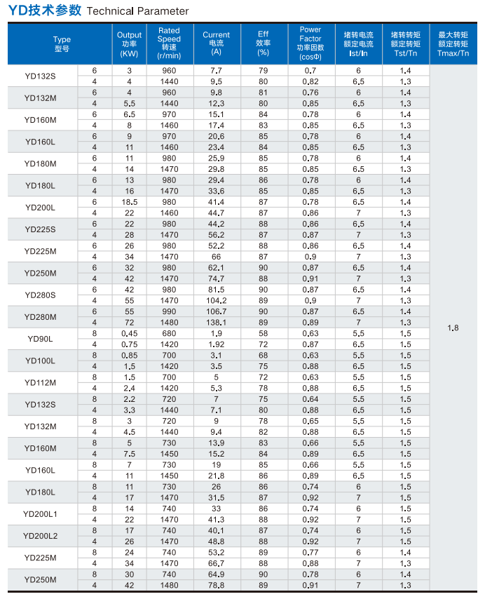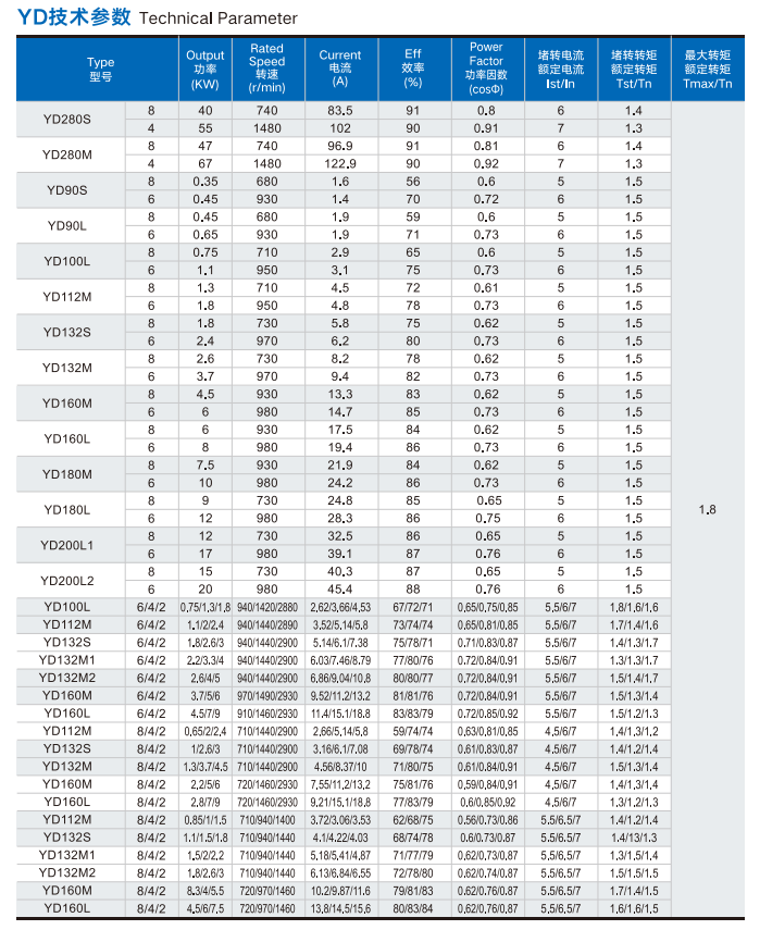 YD Series Variable Frequency Multi-Speed Three-Phase Asynchronous Motors
