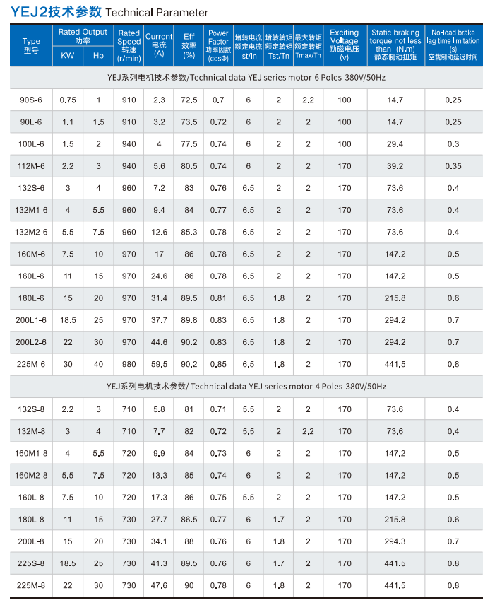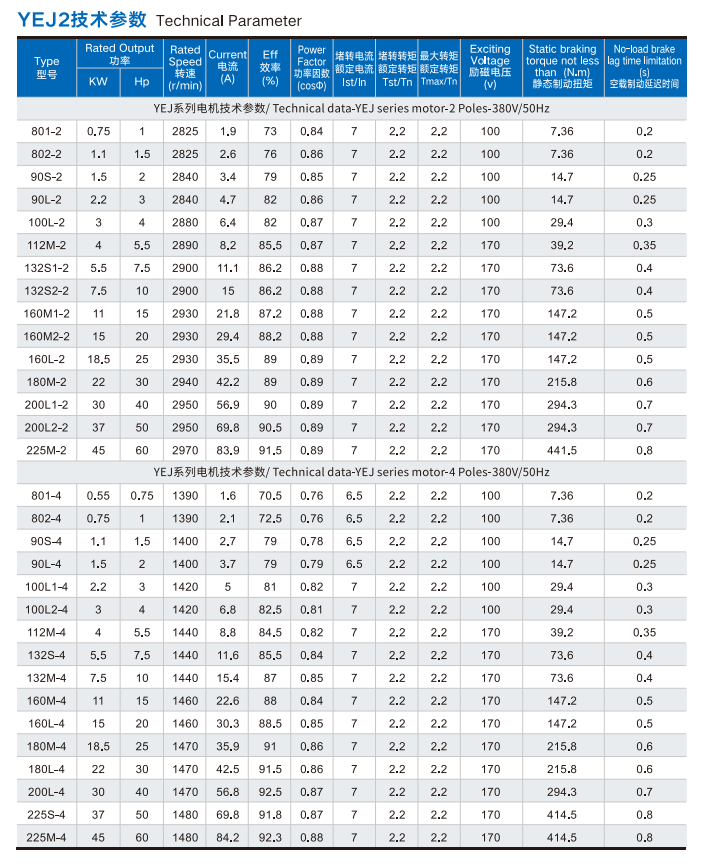 YEJ2 & YDEJ2 Series Electromagnetic Brake Motors